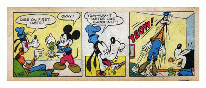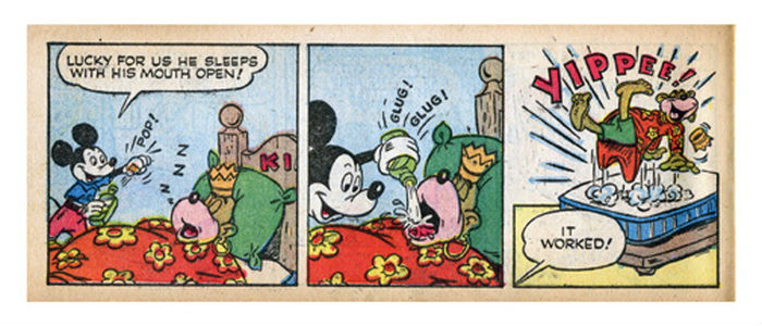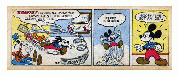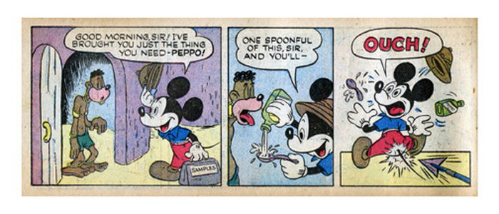 มิกกี้ เมาส์ก็เอาบ้างโดยการชิมยาคำหนึ่ง ก็พบว่าเขารู้สึกคึกสุดยอด เขารู้สึกกระฉับกระเฉง วิ่งรวดเร็วเหมือนม้า โดยไม่รู้สึกเหนื่อย เหมือนตนมีพลังวิเศษปานนั้น พร้อมพูดว่า “เป๊ปโป้สุดยอด!!” จากนั้นมิกกี้ เมาส์ก็บอกให้กุฟฟี่พาเขาไปหาผู้ผลิตหน่อย